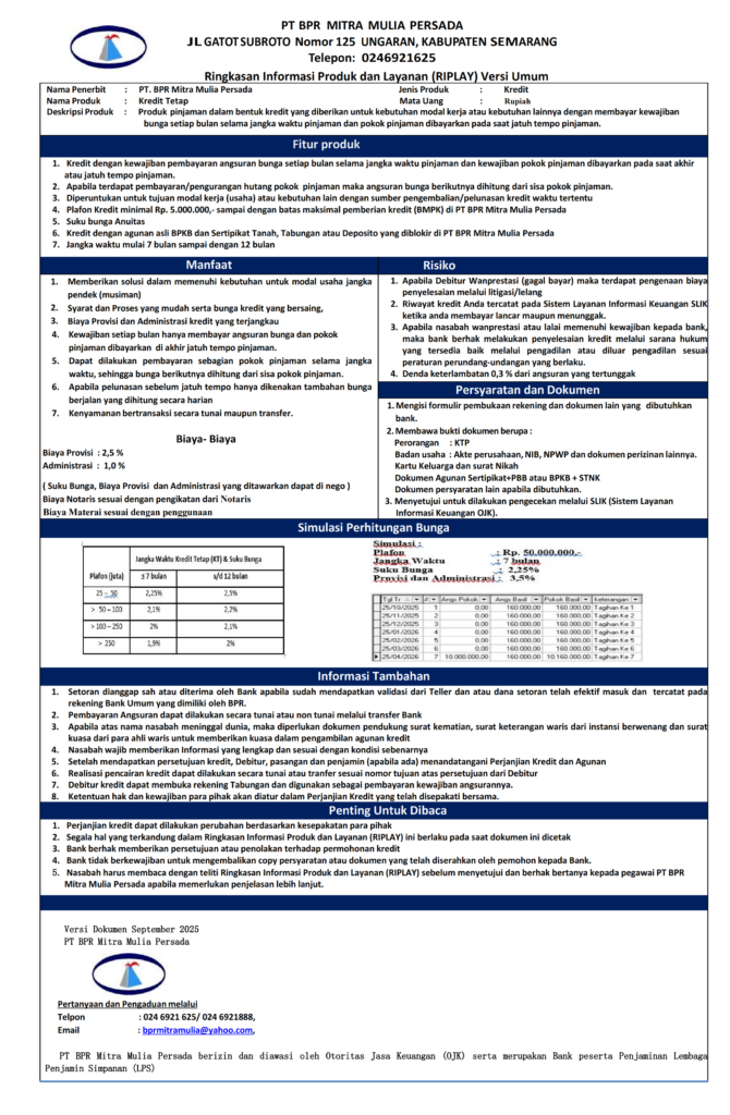 Pinjaman kredit yang sesuai untuk keperluan masyarakat yang membutuhkan dana untuk kegiatan usahanya. |